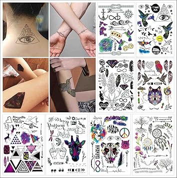 Amazon Com Cokohappy 8 Sheets Temporary Tattoo Over 100 Design For Women Men Dream Catcher Wolf Diamond Deer Bird Beauty Personal Care